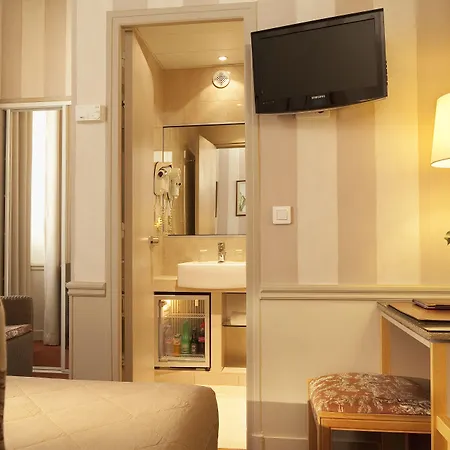The Paris hotel offers 18 rooms with a mini-bar, tea and coffee making equipment as well as attached bathrooms with a separate toilet and a shower. Furnished with a writing desk, they also have sound-proofed windows.